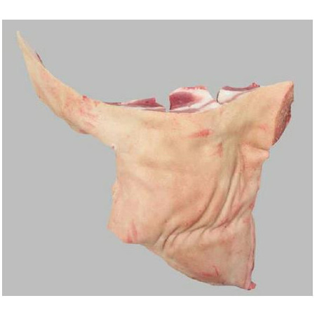 Gorge de porc, sans caillot de sang et avec couenne. Deux incisions coupe contrôle.Poids moyen : 1.5kgTx MG : 50% +/-5%