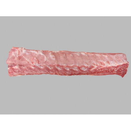Carré issu d'une longe de porc coupée à 10 côtes (+ ou - 1). Sans bretelles, sans cartilage et sans grillade Sans filet mignon et sans noix de gaisse. Epaisseur de gras < 2mm. Désossage à la Rubson (sans intercostales).Poids moyen : 3 kg